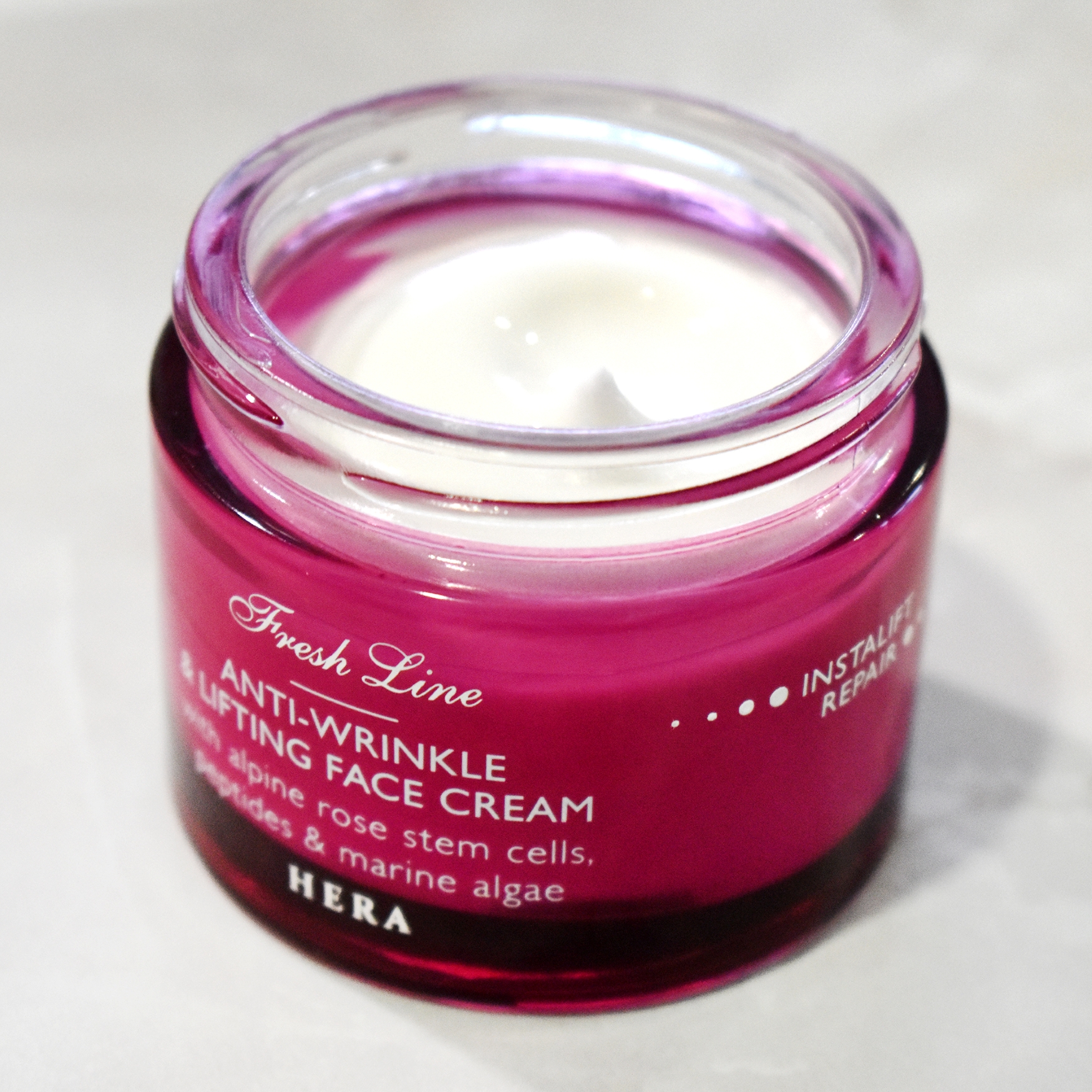 Aqua (Water), C15-19 Alkane, Caprylic/Capric Triglyceride, Propylheptyl Caprylate, Squalane, Behenyl Alcohol, Coco-Caprylate/Caprate, Propanediol, Butyrospermum Parkii* (Shea) Butter, Glycerin, Rhododendron Ferrugineum (Alpenrose) Leaf Cell Culture Extract, Acetyl Hexapeptide-8, Macadamia Integrifolia*Seed Oil, Sodium Hyaluronate, Panthenol, Aloe Barbadensis* Leaf Juice Powder, Tocopheryl Acetate, Helianthus Annuus (Sunflower) Seed Oil, Tocopherol, Saccharide Isomerate, Isomalt, Lecithin, Allantoin, Sodium Acrylates Copolymer, Hydrogenated Lecithin, Hydrogenated Polydecene, Trideceth-6, Glyceryl Stearate Citrate, Sodium Stearoyl Glutamate, Polyglyceryl-3 Stearate, Parfum (Fragrance), Sodium Gluconate, Sodium Polyacrylate, Sodium Benzoate, Citric Acid, Benzyl Alcohol, Dehydroacetic Acid, Alpha-Isomethyl Ionone, Coumarin, Geraniol, Hexamethylindanopyran, Juniperus Virginiana Oil, Limonene, Linalool, Pinene, Tetramethyl Acetyloctahydronaphthalenes
